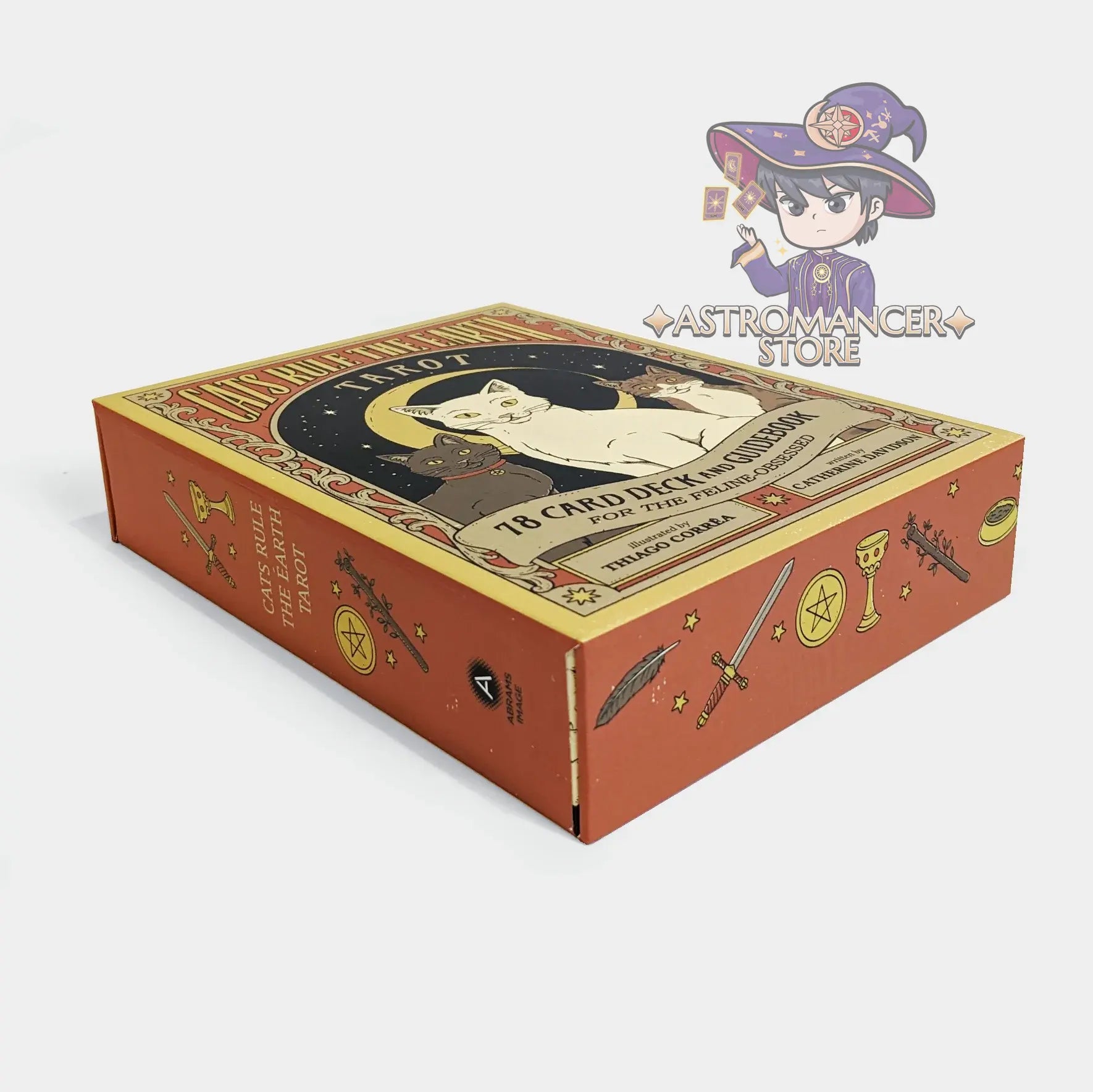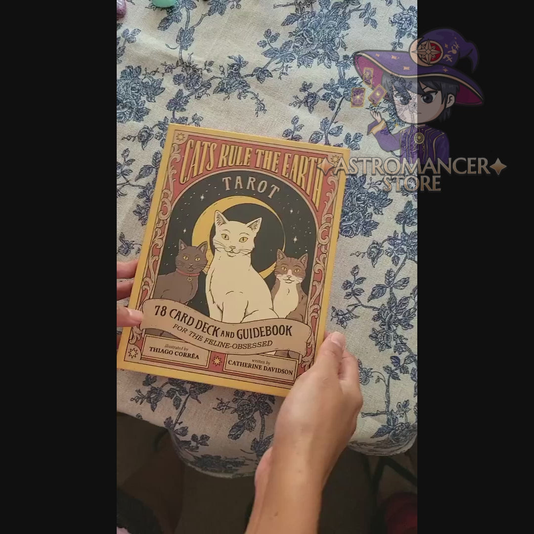 Este mazo de tarot y conjunto de libro guía es ideal para cualquiera que busque el conocimiento y las habilidades necesarias para aprender el antiguo arte del tarot. Ofreciendo una visión ingeniosa y divertida del mazo de tarot habitual, el Tarot "Los Gatos Gobiernan la Tierra" reinventa creativa mente las cartas tradicionales con ilustraciones modernas y peculiares de gatos.